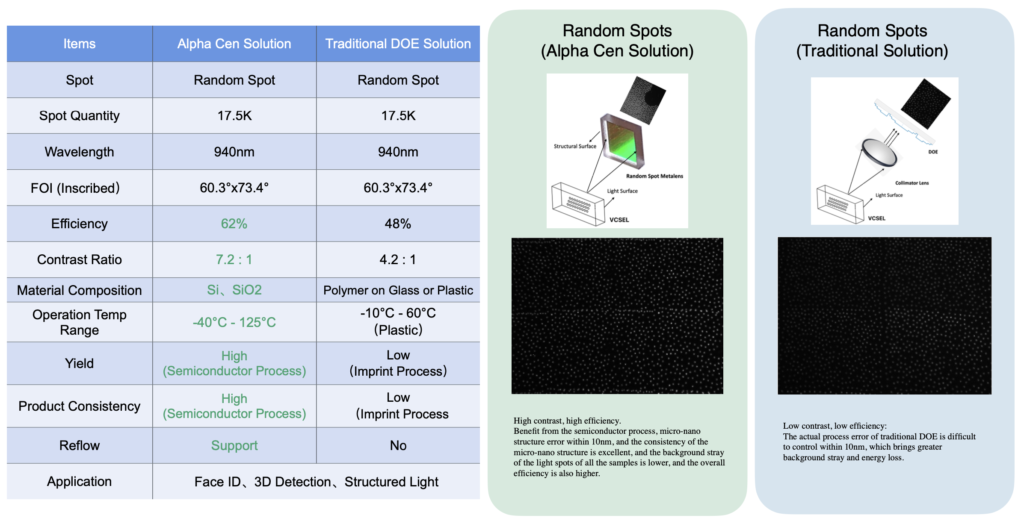 超透镜代表了光学技术的重要进步,相比传统 DOE 与折射透镜具备多项优势。它们在效率、集成能力以及多种应用中的表现更出色,覆盖从成像到光束整形等场景。Alpha Cen 的超透镜技术已在多种实际应用中取得成功,推动光学系统在实现小型化的同时获得功能增强。